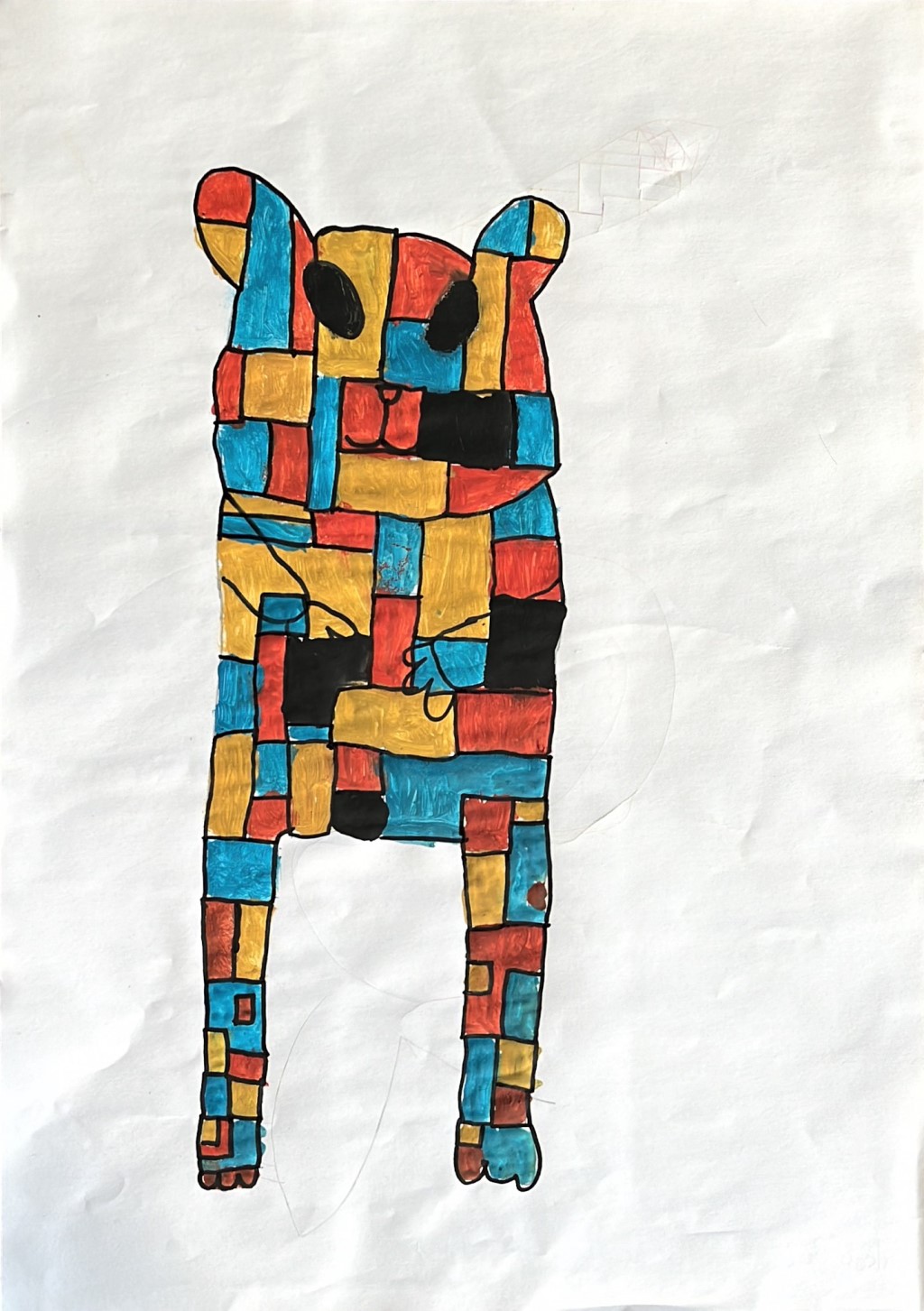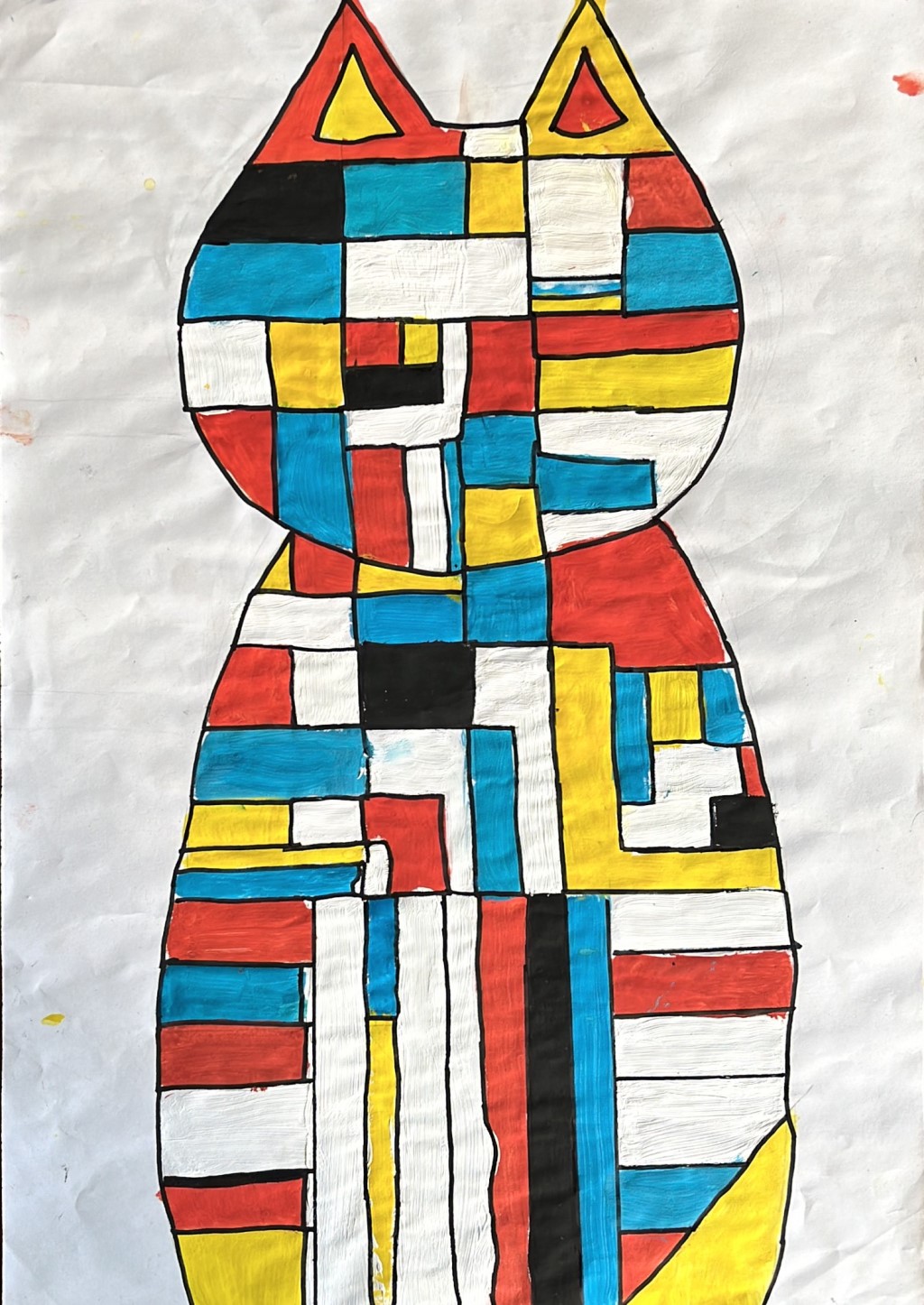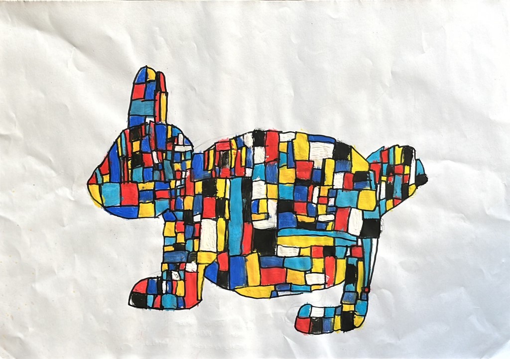 Unser Lehrer Herr Ahlers hatte die tolle Idee, Piet-Mondrian Bilder zu malen. Es gab ganz viele und tolle Bilder, die fünf Farben hatten. Alle hatten tolle Bilder. Sie hatten z.B. Schnecken, Schlangen & Hunde. Alles wurde mit Vierecken ausgefüllt. Und die Farben wahren: rot, gelb, weiß, blau & schwarz.